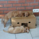 De pups voelen zich prima thuis bij de nieuwe baasjes