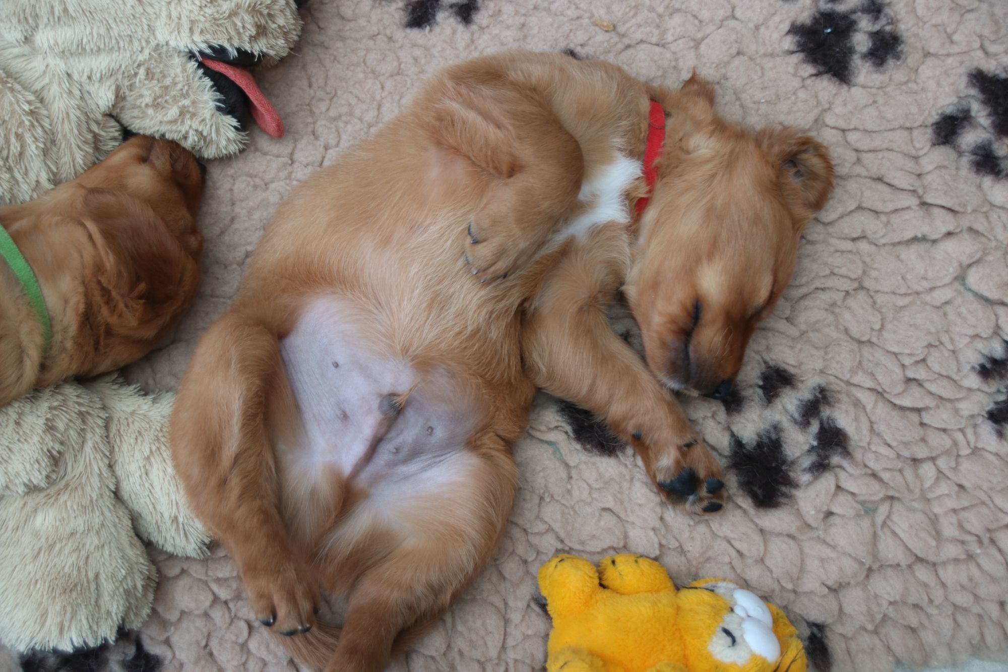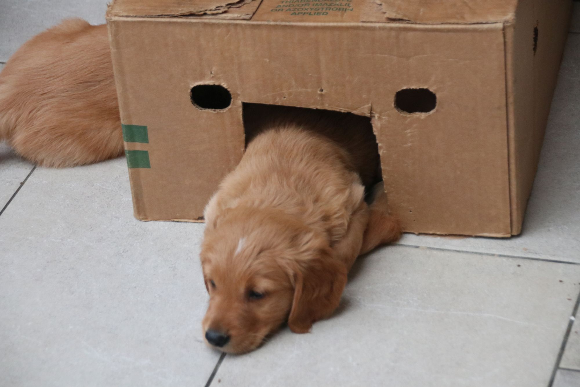 De pups voelen zich prima thuis bij de nieuwe baasjes